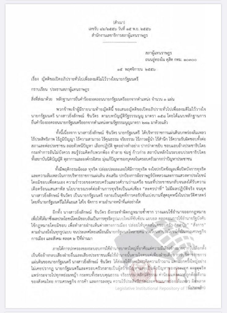 เบรกก งน วส เร มอภ ปรายไม ไว วางใจ ย งล กษณ พท ประท วงขอเอกสาร